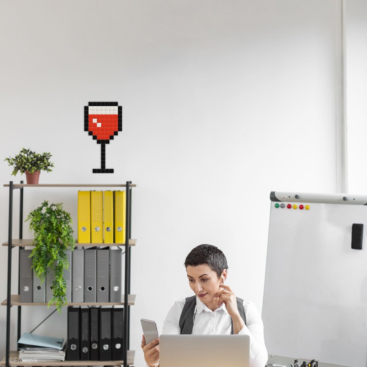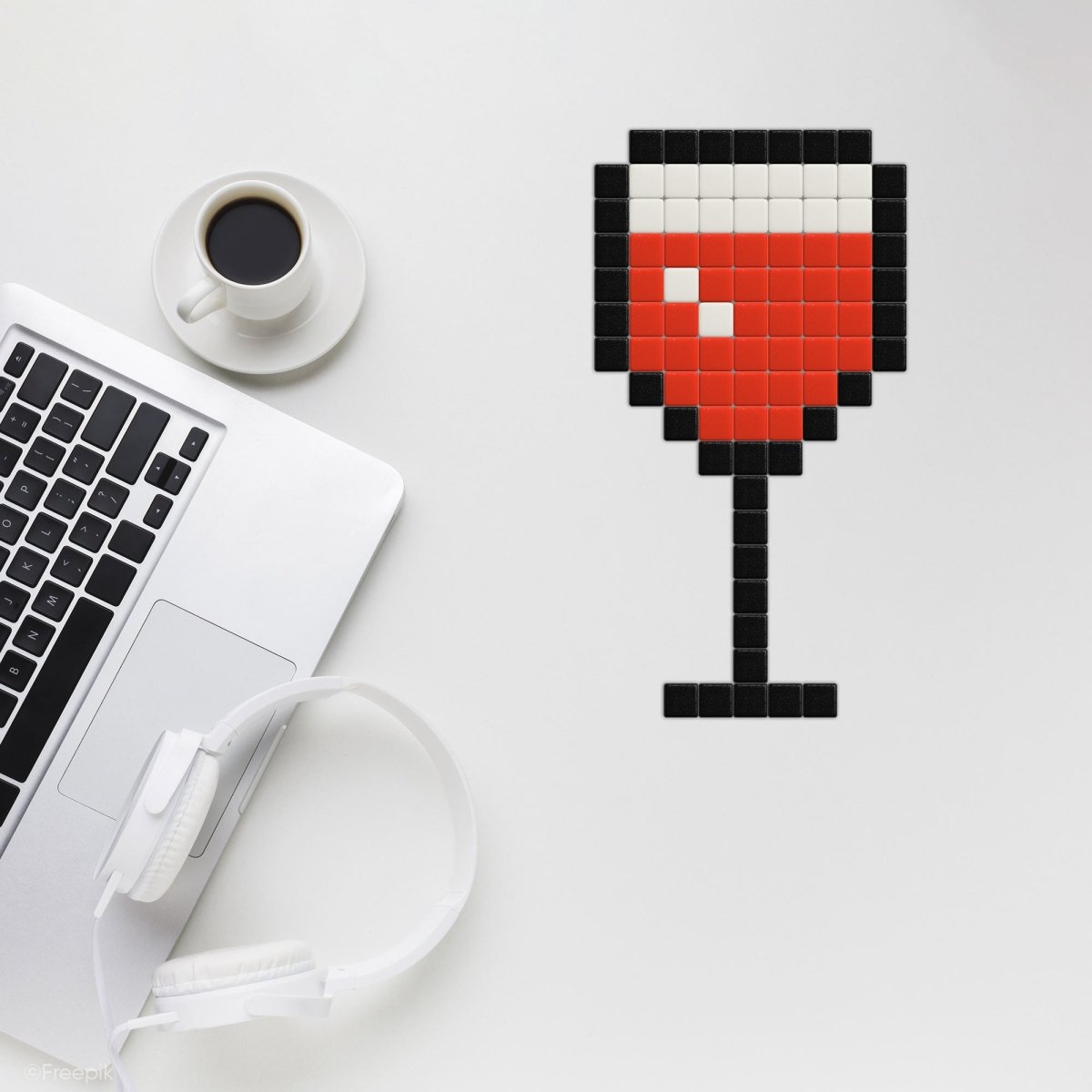 'Verre de vin' est une pièce unique de la collection 'Nourriture & Boissons', idéale pour ajouter du pixel et du fun à votre déco.