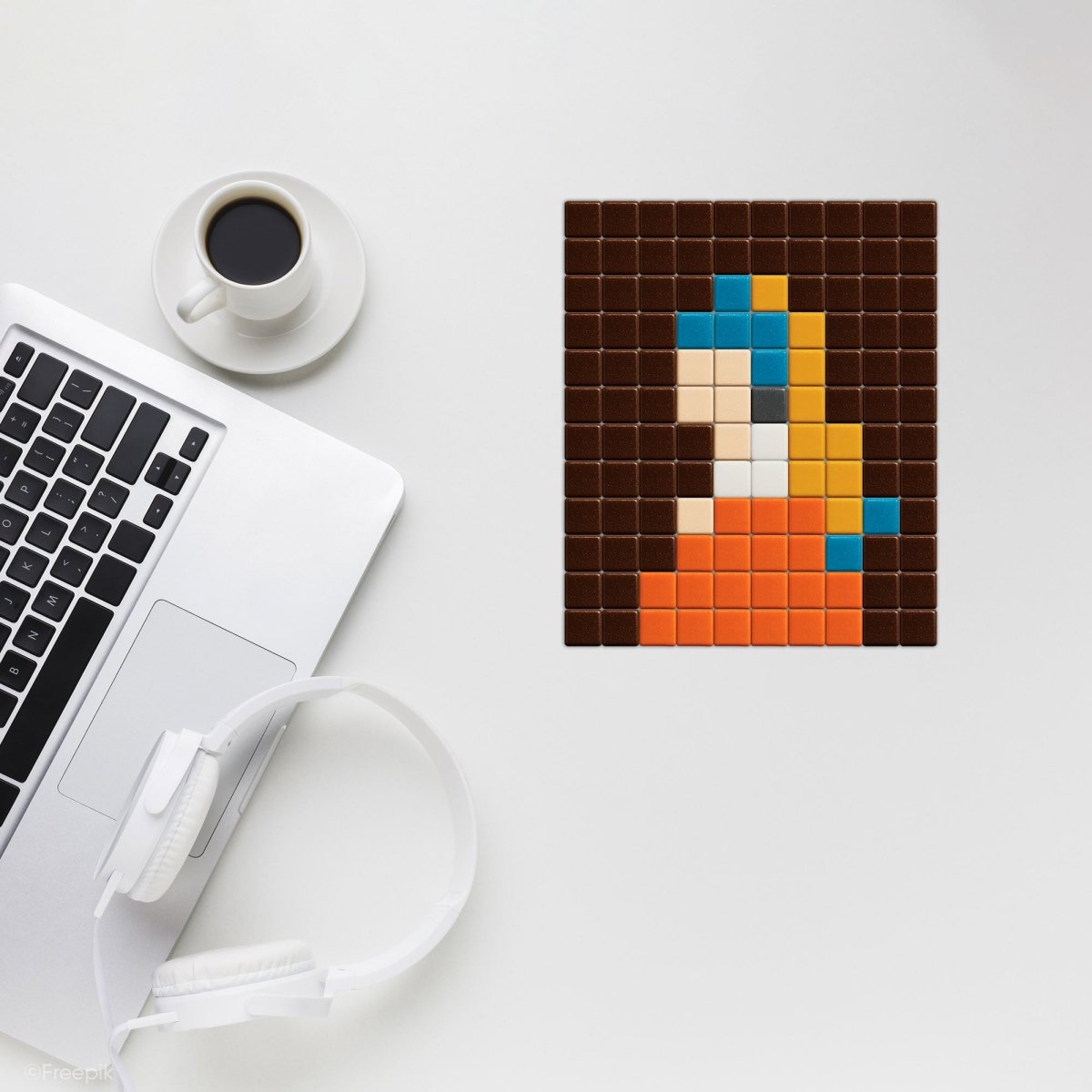 'La Jeune Fille à la perle' est une pièce unique de la collection 'Arty', idéale pour ajouter du pixel et du fun à votre déco.