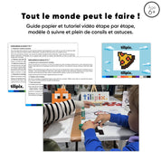 Les kits sont adaptés aux enfants de plus de 6 ans, mais une supervision parentale est recommandée pour les enfants plus jeunes en raison des outils tranchants (cutter/paire de ciseaux), de la colle utilisée et la taille des carreaux.