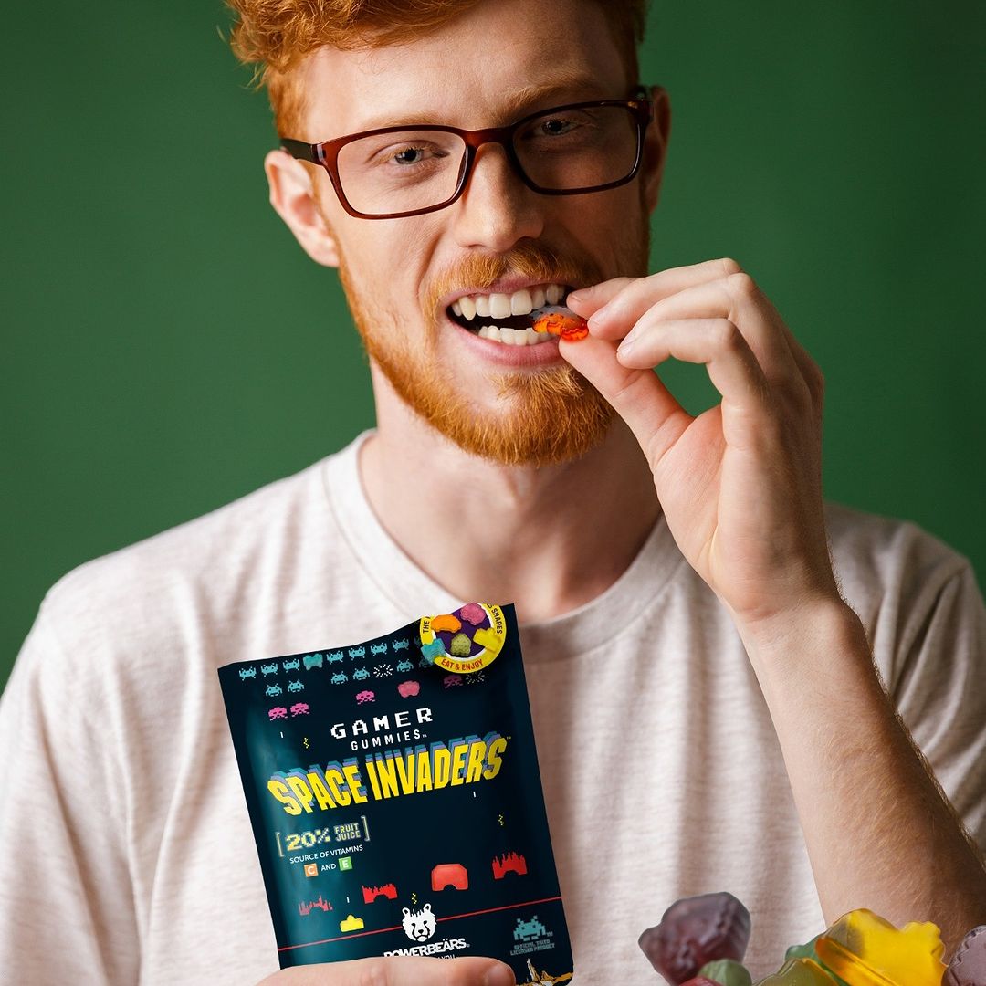 PRODUIT SOUS LICENCE OFFICIELLE SPACE INVADERS : Le jeu vidéo légendaire sous forme de concept amusant de gelée de fruits. Les délicieuses gommes aux fruits de Powerbeärs contiennent les 6 formes emblématiques de Space Invaders et constituent une collation authentique pour les joueurs.