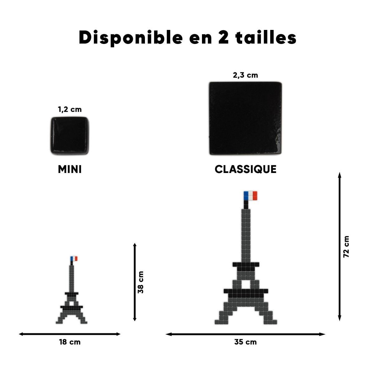 Nos kits sont disponibles en deux tailles de carreaux : mini (1,2 cm) ou classique (2,3 cm). Et en option : nos carreaux phosphorescents.