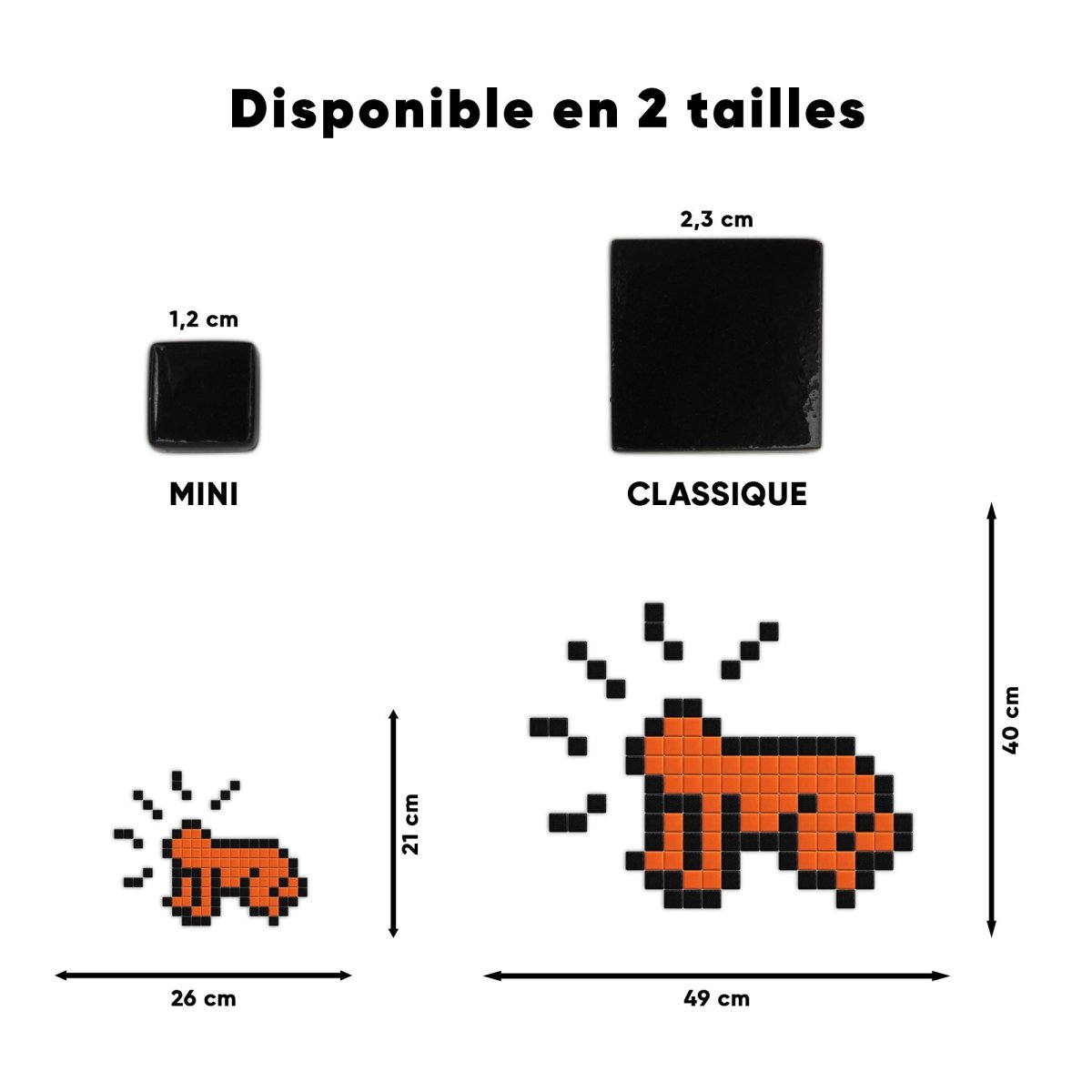 It takes less than two 15-minute sessions to build a mosaic using the kit. This can vary depending on the size and complexity of the mosaic, but above all, on your skill level.