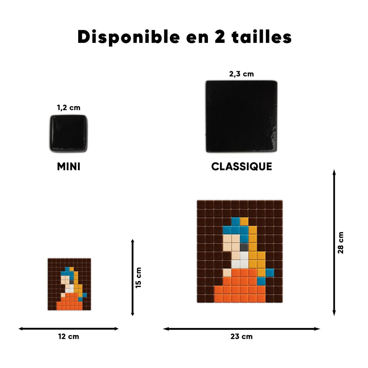 It takes less than two 15-minute sessions to build a mosaic using the kit. This can vary depending on the size and complexity of the mosaic, but above all, on your skill level.