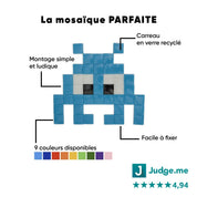 Easily, quickly and neatly install your own street-art mosaic in your living room, kitchen, entrance, in the children's bedroom or on your terrace... in short, wherever you want.