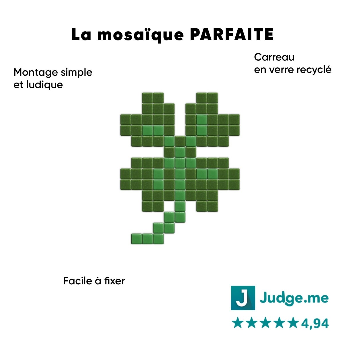 Découvrez Trèfle, un kit DIY de mosaïque qui vous permet de créer une pièce unique pour embellir votre espace intérieur ou extérieur.
